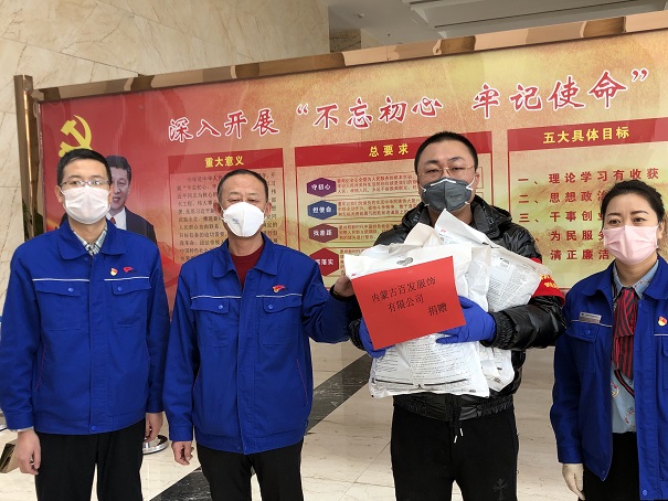 城發(fā)公司黨委副書記、工會主席張永接收了捐贈,并衷心感謝內(nèi)蒙古百發(fā)服飾有限公司對城發(fā)公司防控工作的大力支持和對供熱一線人員的關(guān)心關(guān)愛,表示將立即把口罩全部發(fā)放到奮戰(zhàn)在一線的工作人員手中,鞭策和鼓勵大家全力以赴投入到疫情防控和保供熱的一線工作中去,眾志成城一起努力戰(zhàn)勝疫情。