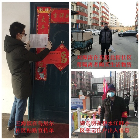 營銷策劃處黨員王海濱是公司環(huán)節(jié)干部,是優(yōu)秀工作者,疫情發(fā)生以來王海濱同志從包頭返回呼市自覺在家隔離14天后,第一時間參加到烏尼爾社區(qū)疫情防控工作。作為黨員,他身先士卒發(fā)揮模范帶頭作用,主動要求去最艱巨困難的崗位,負責小區(qū)31戶隔離者生活物資服務。營銷策劃處職工劉海濤、工程處職工譚東明同樣也在用自己的實際行動詮釋著城發(fā)人的責任擔當,為東影北街社區(qū)、碧龍江畔小區(qū)外出返家隔離人員購買生活用品。雖然這些小區(qū)多屬于多層樓房,沒有電梯,但王海濱、劉海濤、譚東明同志不怕樓高路遠、不怕親密接觸,每天按時往返超市幫助他們購買生活物資,為隔離者送去溫暖,讓他們切實感受到隔離病毒不隔心,黨員群眾一家親。經(jīng)過努力,目前他們所負責的區(qū)域已經(jīng)順利解除隔離人員共計21戶。