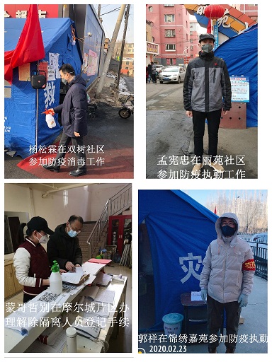 工程處入黨積極分子白文平、職工馬志強、曹明晴、成秀英、楊建剛是金城小區(qū)項目的工程師,疫情發(fā)生后,他們積極響應公司號召到各自社區(qū)金城小區(qū)、橋靠社區(qū)、星河御園小區(qū)、廣廈小區(qū)、望興園小區(qū)參加疫情防護工作。他們在各自防控小組中,恪盡職守、站崗執(zhí)勤,每當遇上大風變天或值夜崗時,值守人員都很難取暖,但為了有效防控疫情,他們克服困難自備棉服、把全部問題都扛了下來。同時他們有的白天協(xié)助社區(qū)工作人員辦理登記、執(zhí)勤工作,晚上還要利用空余時間張貼宣傳單,默默的奉獻和堅守又何嘗不是為群眾們再加一層最強的防護網(wǎng)呢!