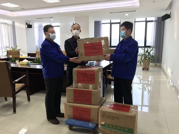 3月7日,山西紫光聚環(huán)保科技有限公司捐贈(zèng)的口罩交接到位。