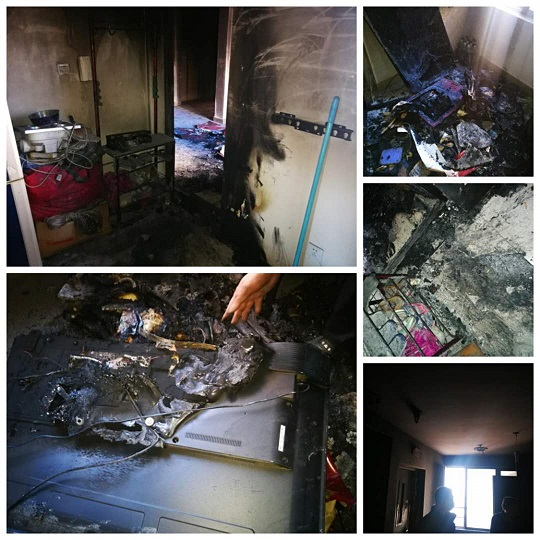 3月15日夜間12點30分,城發(fā)物業(yè)公司所服務的陽光美居公租房8號樓,812室電視機短路自燃引發(fā)火災,火苗迅速蔓延,被引燃的電視柜、沙發(fā)瞬間助推了火勢。當住戶被濃煙嗆醒時,室內(nèi)狹小的空間已被濃煙和火苗占據(jù),住戶無法實施自救。