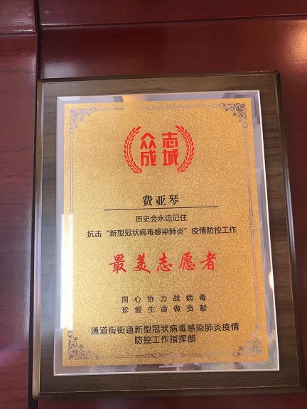 面對疫情這個沒有硝煙的戰(zhàn)場,費(fèi)亞琴展現(xiàn)了一個城發(fā)人的責(zé)任與擔(dān)當(dāng),將轄區(qū)居民群眾的健康放在首位、護(hù)在身后,自己沖在疫情防控工作的第一線。她就是疫情最美的逆行者。