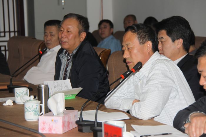 城發(fā)公司黨委副書記張永、副董事長(zhǎng)杜雄勇與職工交流意見。張亞利攝