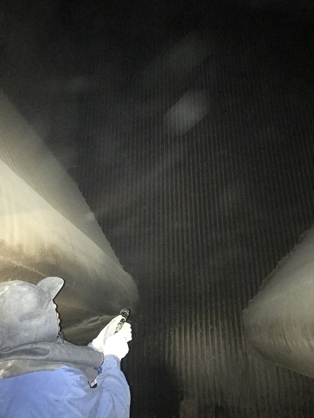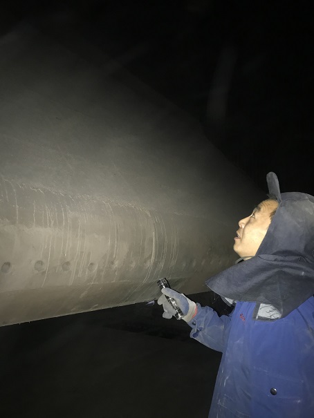 驗收小組一行人通過鍋爐檢修口,進入鍋爐內(nèi)部,檢查鍋爐內(nèi)水冷壁管噴涂施工情況。經(jīng)檢查,施工內(nèi)容符合招標要求。