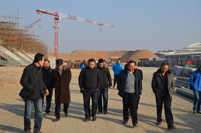 在長(zhǎng)途汽車站工地聽(tīng)負(fù)責(zé)人介紹情況。