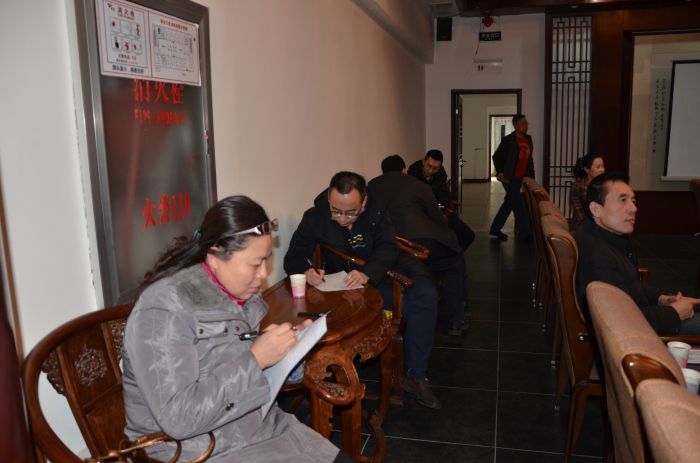 在管網(wǎng)公司會(huì)議室聽(tīng)述職報(bào)告。