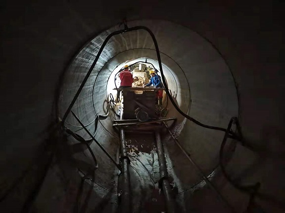 工程負責(zé)人趙永軍介紹,工程采用頂管方式橫穿河道,穿越東河的距離是190多米,先通過頂管方式將供熱管線的套管鋪設(shè)過河,將套管內(nèi)的泥沙運空,再鋪設(shè)供熱管道,套管內(nèi)徑是2.4米、外徑達到了2.88米,此次沉井頂管工程,僅施工費用就達1000多萬元。目前是呼市地區(qū)頂管距離是最長、施工難度最大的工程。為了按期完工,現(xiàn)工人們實行24小時三班倒,每個班是8個人,人停機器不停,平均每天6根管進度,即推進15米,預(yù)計需要1個月的時間完成頂管任務(wù)。