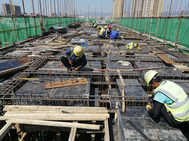 施工現(xiàn)場(chǎng),工人們頭頂似火驕陽(yáng),腳踩蒸騰的混凝土砌塊,不畏鋼筋混凝土作業(yè)面的熱浪,仍在熱火朝天地施工。他們揮動(dòng)著鐵鍬、綁扎著鋼筋、砌筑著磚塊。曬得黑紅的臉頰,有的都脫了皮;摘下口罩,汗珠滴到混凝土砌塊上,瞬間蒸發(fā);脫下衣服,都泵擰出水來(lái)。但他們用實(shí)際行動(dòng)保障工期進(jìn)度。