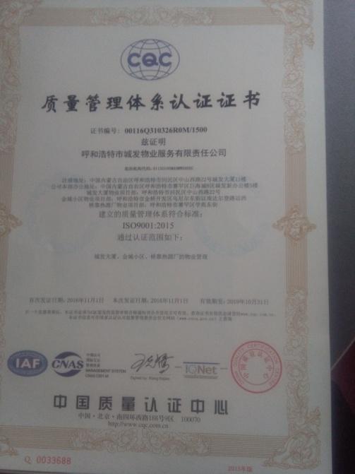 為進一步提升企業(yè)品質(zhì)服務(wù)水平,城發(fā)物業(yè)公司于2016年下半年組織開展了質(zhì)量、環(huán)境、職業(yè)健康安全管理三標(biāo)體系認證。9月初,中國檢驗認證集團內(nèi)蒙古有限公司安排項目評審員對城發(fā)物業(yè)公司相關(guān)認證工作進行了全面咨詢,于9月27-30日完成了城發(fā)大廈、金城小區(qū)、橋靠熱源廠三個物業(yè)項目認證審核工作,于10月中旬前完成了不符合項整改工作。