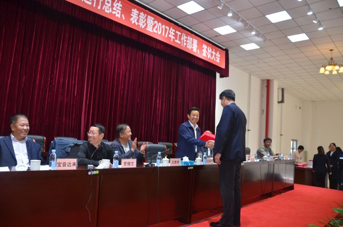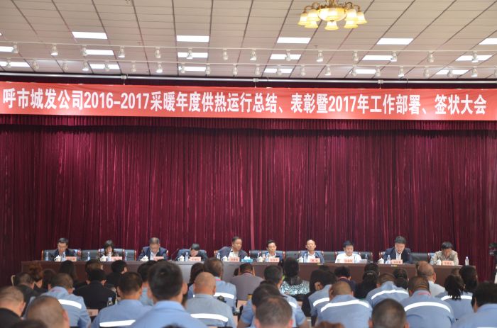 會(huì)上,吳利勤副總經(jīng)理作《呼市城發(fā)供熱有限責(zé)任公司20162017采暖年度運(yùn)行總結(jié)》報(bào)告;黨委副書記張永宣讀《城發(fā)公司黨委關(guān)于表彰2016年度先進(jìn)集體、優(yōu)秀干部和勞動(dòng)模范(先進(jìn)工作者)的決定》,授予辛家營(yíng)分公司等18個(gè)單位呼市城發(fā)公司2016年度先進(jìn)集體、吳利勤同志呼市城發(fā)公司2016年度優(yōu)秀高層干部、呂曉玲等15名同志呼市城發(fā)公司2016年度優(yōu)秀中層干部、李娟等77名同志呼市城發(fā)公司2016年度勞動(dòng)模范(先進(jìn)工作者)榮譽(yù)稱號(hào),并頒發(fā)獲獎(jiǎng)證書;總經(jīng)理呂德育與內(nèi)蒙古少數(shù)民族群眾文化體育運(yùn)動(dòng)中心項(xiàng)目等負(fù)責(zé)人簽訂責(zé)任狀。