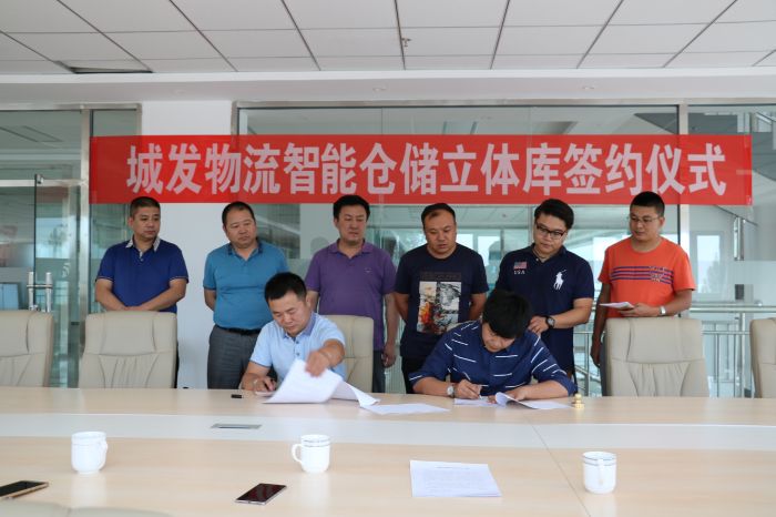2017年6月8日下午,大進(jìn)商貿(mào)公司(金龍魚代理)、寶通資訊公司與城發(fā)物流公司簽約,入駐惱包園區(qū)智能倉(cāng)儲(chǔ)庫(kù)。同時(shí),園區(qū)商戶張?jiān)<t酒公司也要將其貨物從平面庫(kù)移入智能倉(cāng)儲(chǔ)庫(kù)。三家企業(yè)入駐后,惱包園區(qū)智能倉(cāng)儲(chǔ)庫(kù)共計(jì)將實(shí)現(xiàn)3500托的托盤租賃量。