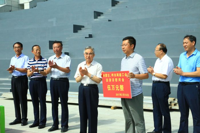 7月13日,內(nèi)蒙古自治區(qū)人大常委會(huì)副主任、總工會(huì)主席杭桂林,呼和浩特市政府副巡視員、黨組成員劉敏,市人大常委會(huì)副主任、總工會(huì)主席斯欽畢力格等一行向奮戰(zhàn)在我市重大項(xiàng)目重點(diǎn)工程內(nèi)蒙古少數(shù)民族群眾文化體育運(yùn)動(dòng)中心一線(xiàn)施工現(xiàn)場(chǎng)的工作人員進(jìn)行送清涼慰問(wèn),發(fā)放5萬(wàn)元慰問(wèn)金,表達(dá)了兩級(jí)政府對(duì)我市重大項(xiàng)目重點(diǎn)工程一線(xiàn)單位職工的深切問(wèn)候和關(guān)懷。城發(fā)公司董事長(zhǎng)、黨委書(shū)記張瑞平,黨委副書(shū)記、工會(huì)主席張永等領(lǐng)導(dǎo)陪同。文\陳柯羽