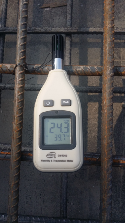 2017年7月18日上午10:30左右,呼和浩特市低碳供熱亞行貸款項(xiàng)目辛家營(yíng)熱源廠中繼泵房蓄水池墻體和消防泵房梁柱開(kāi)始澆筑,此時(shí)施工現(xiàn)場(chǎng)溫度為39.7℃。