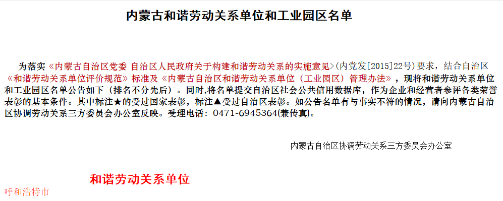 城發(fā)公司成功通過內蒙古自治區(qū)勞動關系三方委員會的審核,被授予內蒙古自治區(qū)和諧勞動關系單位的光榮稱號。