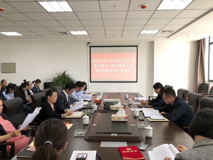 上午,城發(fā)房地產(chǎn)公司黨支部組織召開了房地產(chǎn)公司2018年集中整治雁過拔毛式腐敗問題專項(xiàng)行動會議,公司全體干部職工共30人參加會議。