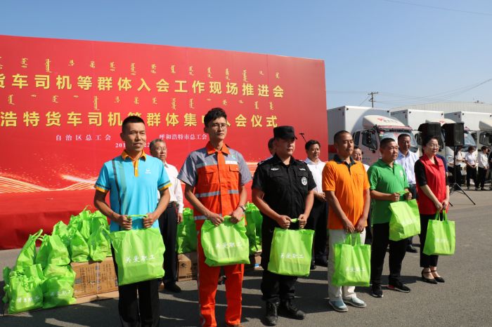在場的各位領(lǐng)導(dǎo)、貨車司機(jī)等工作人員共同聽取了自治區(qū)總工會關(guān)于貨運(yùn)司機(jī)等群體的入會報(bào)告后,激情昂揚(yáng)的宣讀了入會誓詞。自治區(qū)、呼市兩級總工會的各位領(lǐng)導(dǎo)向與會的各單位頒發(fā)了工會會員證,并向入會貨車司機(jī)發(fā)放了慰問品。