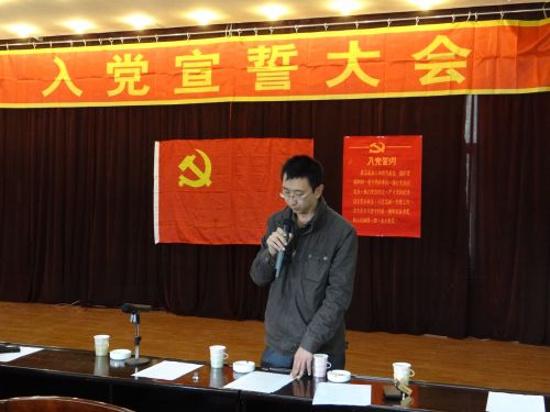 會場肅穆莊嚴,主席臺正中懸掛著中國共產(chǎn)黨黨旗。在雄壯的《國際歌》聲中,儀式拉開了序幕,四名預(yù)備黨員在黨小組長的帶領(lǐng)下,緊握右拳,面對黨旗莊嚴的進行了宣誓,表達了為共產(chǎn)主義事業(yè)奮斗終生的決心。儀式結(jié)束后,預(yù)備黨員代表張學(xué)文進行了發(fā)言,表達了能成為中國共產(chǎn)黨一員的激動和光榮,同時也深切感受到了責(zé)任感和使命感,今后要時刻以黨員標(biāo)準(zhǔn)嚴格要求,努力工作,堅定信念,為黨的事業(yè)努力奮斗,再立新功。