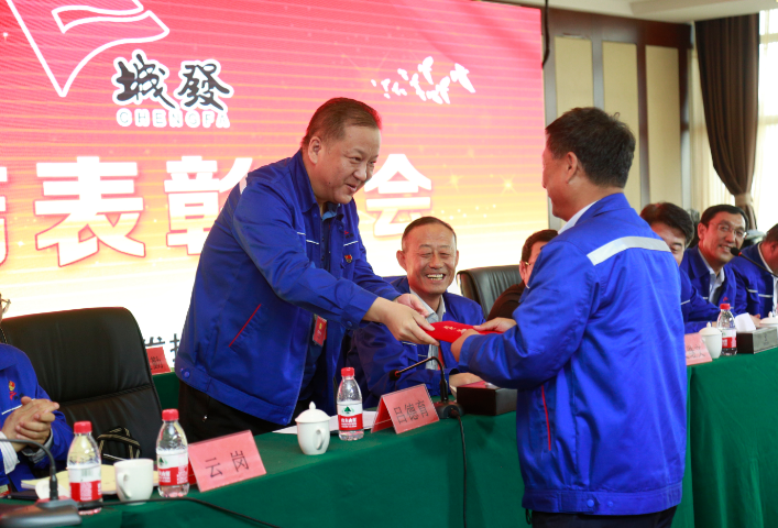 會上,城發(fā)公司班子成員為獲得先進(jìn)集體、先進(jìn)生產(chǎn)(工作)者、優(yōu)秀管理人員、先進(jìn)黨支部、優(yōu)秀黨務(wù)工作者和優(yōu)秀共產(chǎn)黨員的職工代表進(jìn)行頒獎并予以鼓勵(lì)。在2018年生產(chǎn)、經(jīng)營、建設(shè)、管理工作中,授予王觀法同志2018年度優(yōu)秀高層管理人員榮譽(yù)稱號;授予胡日查等15名同志2018年度優(yōu)秀中層管理人員榮譽(yù)稱號;授予橋靠分公司等17個(gè)單位2018年度先進(jìn)集體稱號;授予劉堅(jiān)等79名員工為2018年度先進(jìn)生產(chǎn)(工作)者稱號。