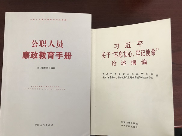 會上還學(xué)習(xí)了《習(xí)近平關(guān)于“不忘初心、牢記使命”重要論述選編》第五章——把政治建設(shè)擺在首位,不斷增強(qiáng)“四個意識”、堅定“四個自信”、做到“兩個維護(hù)”。《公職人員廉政教育手冊》國企領(lǐng)導(dǎo)人切莫損公肥私、國企領(lǐng)導(dǎo)人不得濫用經(jīng)營權(quán)等方面內(nèi)容。