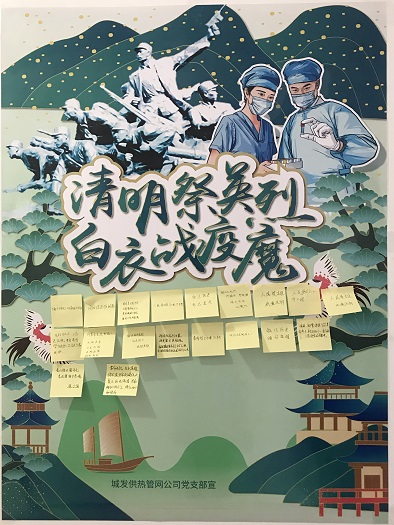 黨支部還制作了祭奠海報(bào),張貼在樓道醒目位置,黨員群眾可以隨時(shí)進(jìn)行祭掃活動(dòng),并留下祭掃寄語,祭奠在中國革命、建設(shè)、改革歷史進(jìn)程中英勇犧牲烈士的同時(shí),致敬在抗擊疫情一線犧牲的醫(yī)護(hù)人員、公安干警等"逆行英雄"。