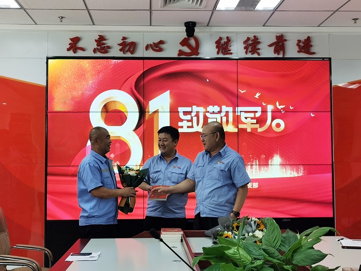 為進(jìn)一步貫徹落實(shí)習(xí)近平總書記就關(guān)心關(guān)愛退伍軍人工作作出的重要指示精神,加強(qiáng)軍民融合,深化雙擁共建,在“八·一”建軍節(jié)到來之際,7月31日下午,物流公司黨支部組織黨員、發(fā)展對(duì)象、積極分子、復(fù)原退伍軍人開展紀(jì)念建軍九十三周年活動(dòng)。