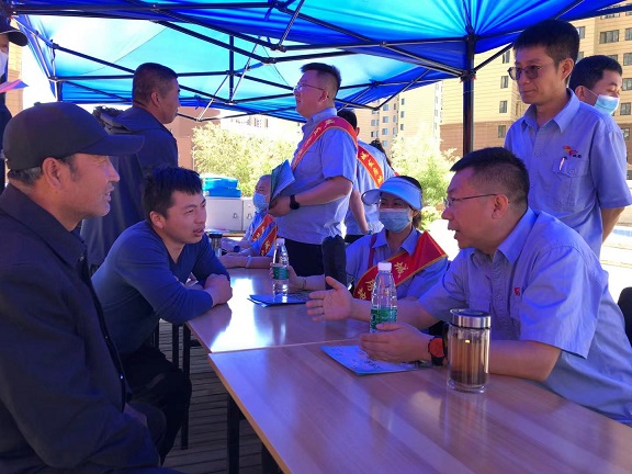 電腦、座椅的布置等準(zhǔn)備工作 ?;顒?dòng)中,現(xiàn)場(chǎng)氣氛活躍 ,人流較多,志愿者們不怕風(fēng)吹日曬,熱情的向廣大群眾發(fā)放了公司專門制作的公租房銷售和產(chǎn)權(quán)辦理宣傳圖冊(cè),并現(xiàn)場(chǎng)為部分購(gòu)房群眾發(fā)放購(gòu)房發(fā)票和網(wǎng)簽合同。大家現(xiàn)場(chǎng)還詳細(xì)介紹了公租房購(gòu)買條件、流程以及辦理不動(dòng)產(chǎn)權(quán)證等政策知識(shí),耐心的解答了群眾關(guān)于購(gòu)買公租房和辦理產(chǎn)權(quán)政策的各種疑慮 、困惑 。同時(shí)黨支部書記郭依群同志 、經(jīng)理李錚同志積極聽(tīng)取群眾意見(jiàn)建議,主動(dòng)協(xié)調(diào)市住建局開(kāi)放小區(qū)北門,方便群眾出行 。