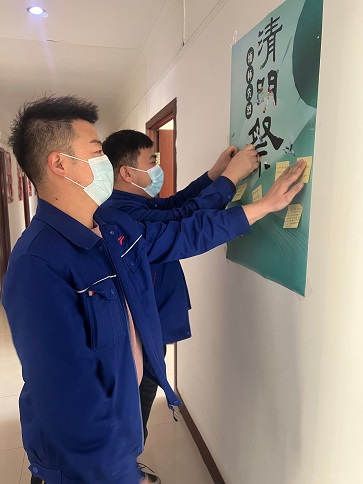 受新冠肺炎疫情影響,避免人群聚集,黨支部制作了祭英烈、宣傳文明祭掃海報(bào),張貼在樓道醒目位置,引導(dǎo)黨員干部在緬懷先輩的情懷中弘揚(yáng)傳統(tǒng)、增進(jìn)愛黨、愛國、愛社會主義的情感,通過留言寄語,表達(dá)對革命先烈的緬懷和崇敬之情,同時(shí)要求黨員干部要以身作則,努力在節(jié)儉治喪、文明祭掃等方面作表率,以實(shí)際行動(dòng)影響和帶動(dòng)身邊群眾,做文明之風(fēng)的倡導(dǎo)者和傳播者,做革除陋習(xí)的先行者、移風(fēng)易俗的推進(jìn)者、文明祭祀的示范者。