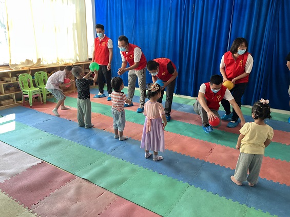 活動現(xiàn)場,愛心小分隊一行將精心準備的慰問品送到孩子們的手中,與他們親切交談,參觀孩子們學習、生活的環(huán)境,詳細了解孩子們的學習、生活狀況。隨后,愛心小分隊與孩子們進行了搶板凳、接皮球等互動游戲,在歡聲笑語中,志愿者與孩子們結(jié)下了深厚的友誼。